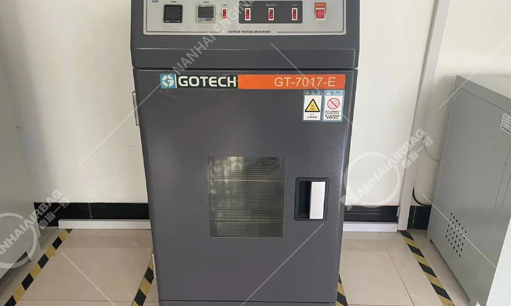 Sin ningún tipo de carga, llene la bolsa de aire hasta que la presión interna de la bolsa de aire alcance la presión de trabajo nominal. La presión interna debe ser registrada y comparada con la presión de trabajo nominal después de 24 horas. La pérdida de presión debe ser inferior a 3% de la presión de trabajo nominal.